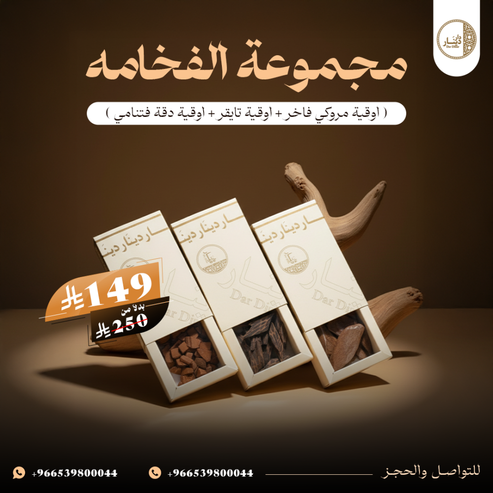 تتكون من 3 اوقيات مختلفة لجميع الاذواق اوقية مروكي فاخر + اوقية تايقر + اوقية دقة فتنامي